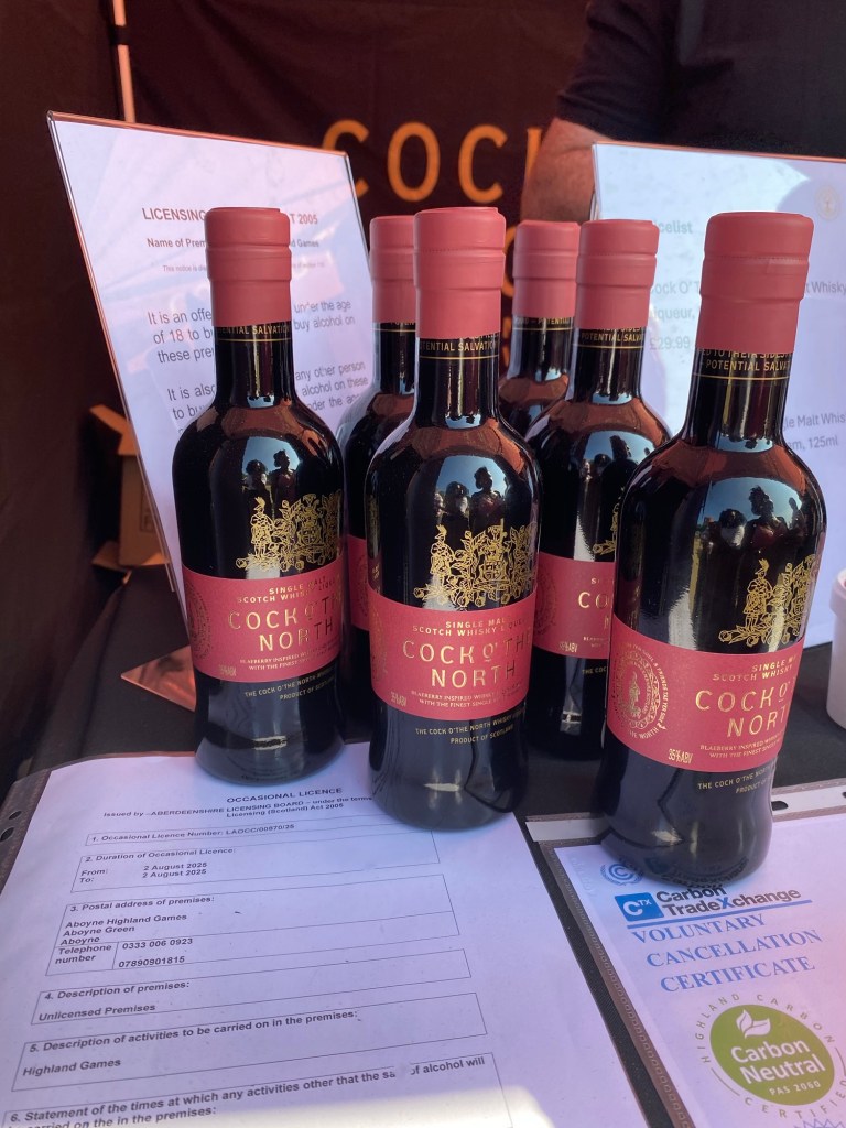 This year’s Aboyne Games were blessed with full sunshine and warm temperatures (almost 80 degrees Fahrenheit, a bit of an anomaly!). I had a wonderful time meeting some members of Clan Baird as well as some other clan members. Since we came from outside of Scotland, we were delighted to see an international tent. We received a personal greeting from Granville Gordon, 13th Marquess of Huntly and Chieftain of the Aboyne Games. We celebrated our time with a taste of Cock O’ The North whisky liqueur (after which, we promptly purchased our own bottles to take home).