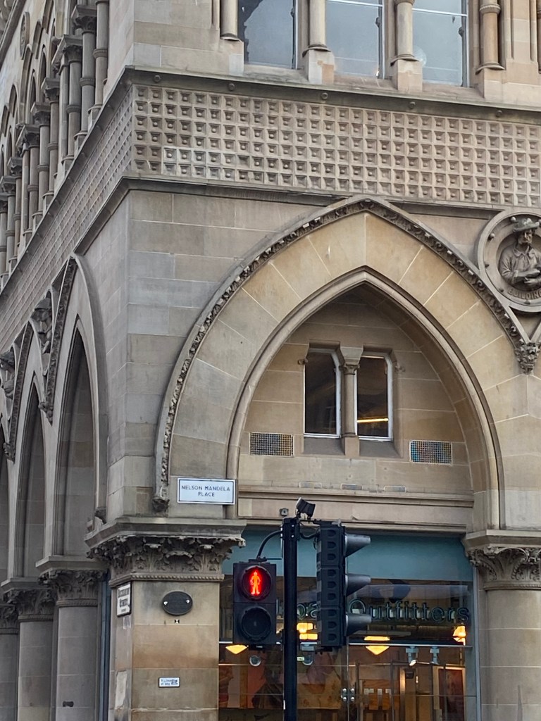 Once we finished shopping, we made our way back to the hotel. I snapped photos of interesting things I saw on our walk, including Nelson Mandela Place, a street named after the South African former President, Nobel Peace Prize recipient, and anti-apartheid activist. I also saw shops and architectural details that I loved.