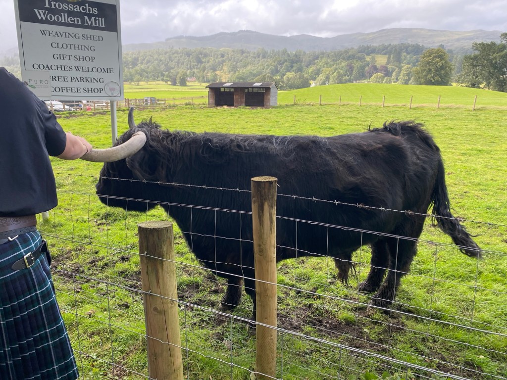 We boarded the tour bus and made our way to the next city on our tour, Stirling. However, we stopped momentarily at Loch Katrine, then followed that with a later stop at a local shop which had some highland coos in a neighboring field, and I got the treat of a lifetime when I was able to feed those sweet coos!