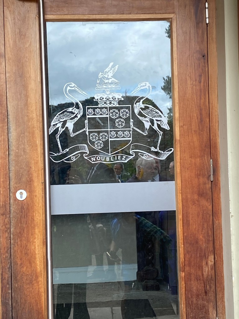 The next day, we ate breakfast and dressed well because we were headed to Buchanan Castle Golf Club for the Clan Graham Annual General Meeting (AGM). At this event, we were greeted by His Grace, James Graham, 8th Duke of Montrose, descendant of James Graham, 1st Marquess of Montrose. Standing beside His Grace, in the soft, misty rain, was a bagpiper, welcoming us in the warmest Scottish way.