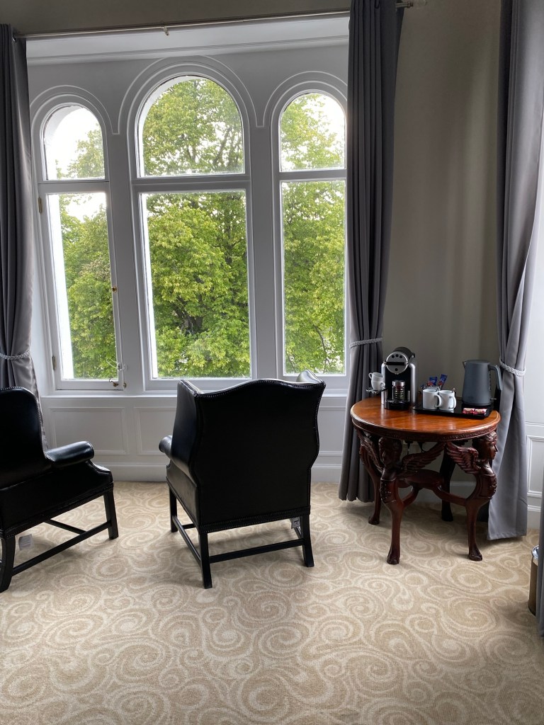 Before we got to Edinburgh, however, we had a full day of activity ahead. After eating breakfast and checking out of The Links Hotel, we journeyed to our first stop, Scone Palace. Located in Perthshire, this stunning castle is the place where Scottish kings were crowned for hundreds of years. Before entering the palace, you can see the Stone of Destiny, the symbolic stone where these newly crowned kings would sit, in recognition of their reign. One such king is MacBeth (yes, that one), who was crowned in 1040. The stone is surrounded in mystery, as the original disappeared years ago and has never been located. That being said, there is great lore about both the Stone, as well as the rest of the palace.