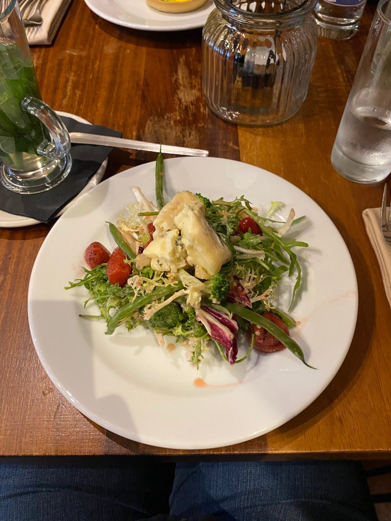 We missed breakfast, but walked to a nearby restaurant for lunch. We decided to try David Bann, a vegetarian restaurant. I order a mint tea, a salad, and the wild mushroom bake. I finished with a dessert. Everything was so delicious! I hate how quickly I ate my meal: I barely got any pictures. That being said, I highly recommend that you all stop by if you’re in Edinburgh (if you’d like me to do a review on David Bann specifically, I can make that a separate post).