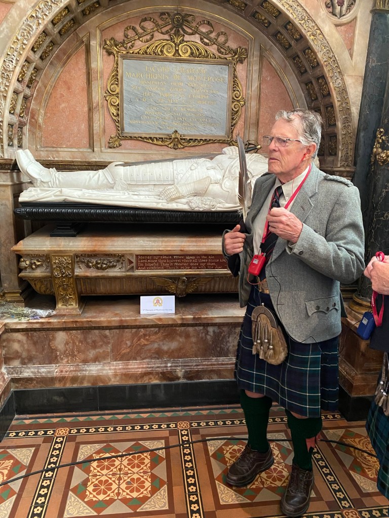 I was deeply moved as I paid my respects to James Graham, 1st Marquess of Montrose. I was amazed by the peaceful and dignified likeness of Graham on his sarcophagus. Richard Graham, North American Chieftain of Clan Graham, and president of Clan Graham Society, provided a stirring recitation of the poem written by James Graham prior to his execution.