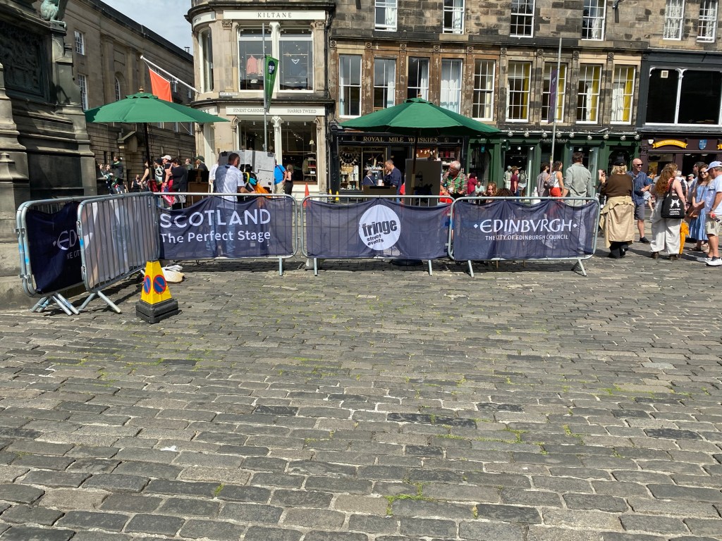 Barriers for Edinburgh Fringe: it states, Scotland, The Perfect Stage. They’re right!