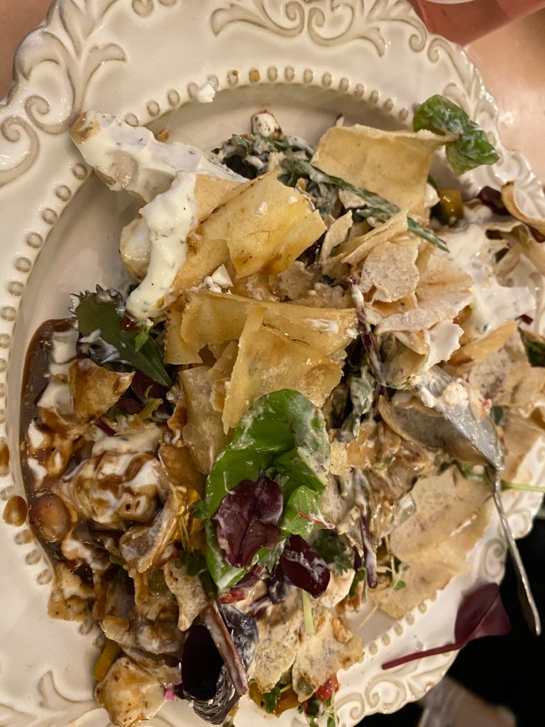 We progressed to the roasted sweet potato salad, which had a mixture of cubed sweet potatoes, feta cheese, bits of sauteed kale, and cranberries. The salad was served in a single endive leaf, adding a touch of tasty bitterness to a dish that perfectly captured sweetness, sourness, saltiness, and umami. This was a surprise hit for me, as I didn’t know what kind of salad to expect. This is absolutely a dish I would make myself, and would happily serve to others. We finished our savory bites with the braised green handpies, which my daughter accurately described as tasting like gomen, Ethiopian style collard greens. These handpies featured both collard and kale green, cooked until flavorful and tender, and the greens with mixed with other winter vegetables (like squash). On top of the flaky pastry pockets, there was a drizzle of smoked tomato coulis, the perfect little touch of delicious decoration. The handpies was my daughter’s favorite dish.