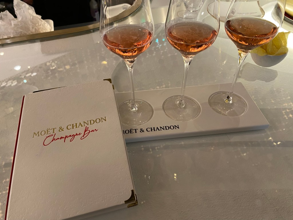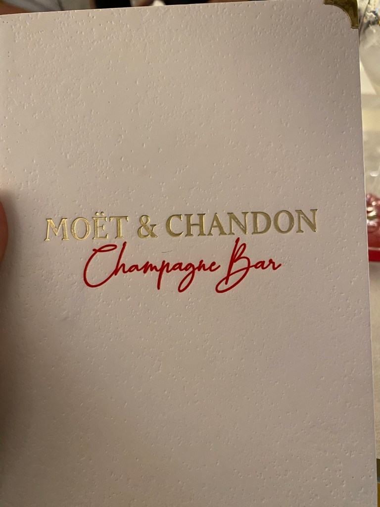 The experience started with us being seated in a lovely room that was a bit further back from the main entrance. Our space was punctuated with a grand Christmas tree that was white with silver accents. The room itself was a deep teal color, with light multicolored wooden floors and gold accents upon the walls. As we took in the beauty of our space, we were greeted by our waiter, who brought us menus and filled our water glasses.