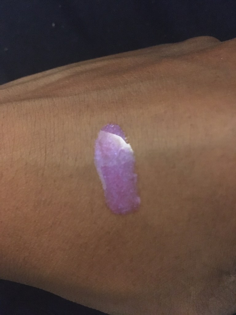 According to the Kandi Koated website, the lip shine is described as, “Ultra-rich lip gloss that can be worn alone or layered over your favorite lipstick for added color and gloss! Delivers a bright and beautiful shine.” The description is correct: the lip gloss is shiny and adds a brilliant tint to your lips. This product has a lovely iridescence that looks both pink and purple at the same time.